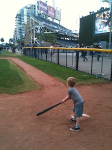 Last week T and I went down to San Diego for a visit with Grandma/ my mom. I was born and raised in San Diego and my mom still lives there, which makes it fun to take T back to visit and see places that I went to as a kid. But sometimes there are even a few places he now gets to go to that either I never knew about growing up or just plain didn’t exist when I lived there. This particular trip was centered on taking T to one place that I can only wish existed when I was a little girl: Petco Park.