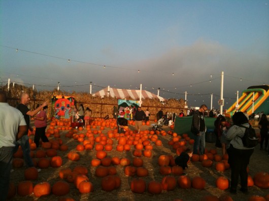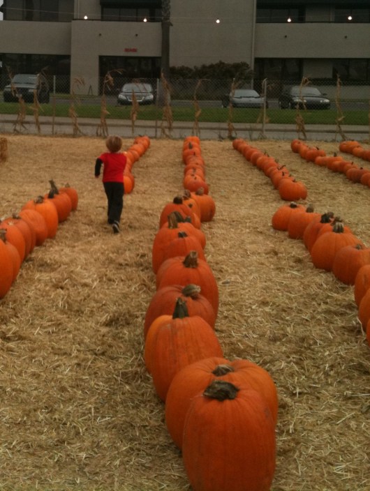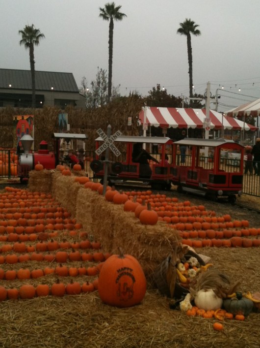 Pa’s Pumpkin Patch, located on PCH in the Southeast corner of Long Beach, has been our Halloween seasonal destination since T a baby. It’s a “traveling” pumpkin patch, meaning that it’s not an authentic farm setting or anything like that, but boy is it sure fun for the wee ones! I think we took T there for the first time as an infant to take pumpkin baby pictures, and then starting when he was around two years old, T started going for the rides. Given there’s a train ride, T loved it from the start. And if he is lucky enough to be the engineer, ride up front, and ring the bell, that makes not just the entire outing but his entire day.