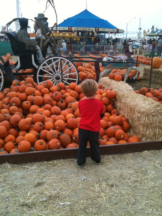 This year T has added new favorite thing down at Pa’s: the “head holes.” You know, those displays where you put your face in a hole and take stock photos in the pumpkin yards. This place must have at least a dozen of these stands, and T literally ran through all of them and put his head in the holes. Whether we were fast enough to get his photo as he looked through all of them is another story.