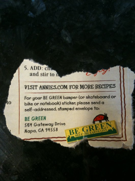 A few weeks ago I was making T one of his favorite lunches, mac-and-cheese (ha, go figure!), and I noticed something on the back of the box that I’d never paid attention to before…