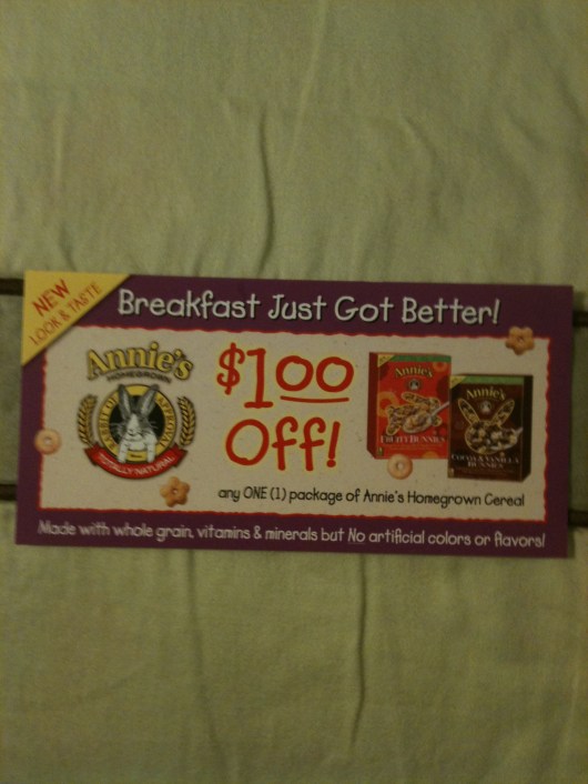 Has anyone tried Annie's cereal? I'll be honest, I didn't even know they made cereal! For a buck off, I might try it though!