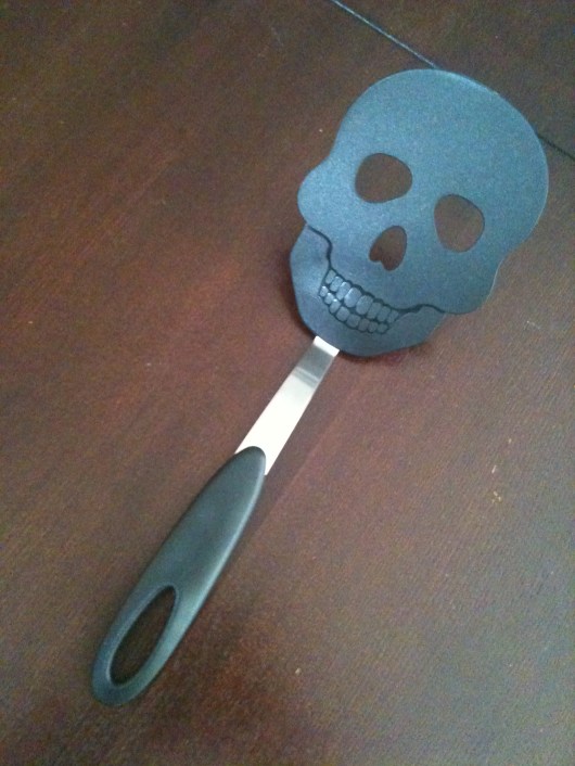 This is a Tovolo-brand spatula that Santa brought to T this Christmas. T's really into pirates right now, so this was an instant flip, er, hit! Argh!