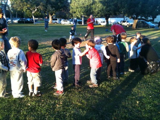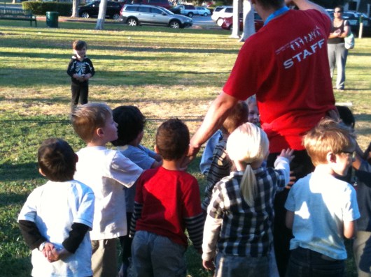 Run by TriFytt Sports, this is a T-ball class – not competitive teams and most certainly not a league. Thank goodness. I love that our parks and rec offers a fun, safe, and competitive-free environment for the wee ones (we’re talking preschool-aged) to actually learn the ropes – or bases as it is with T-ball – without worrying about winning. Heck, the entire first class didn’t even require a ball, glove, or bat of the group since all that the two coaches worked on with the kids was learning where the four bases were at and the order to run them. Have you ever seen a group of 20 three- and four-year-olds run around a baseball diamond? Good times, and oh-so-cute!