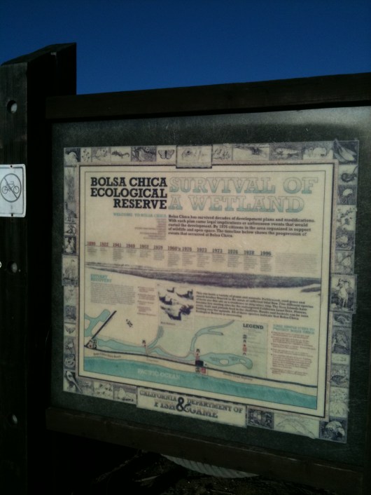 Educational signage such as this one welcome visitors at the parking lot before entering the Bolsa Chica Ecological Reserve. PS - parking is free!