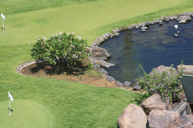 Look closely and you will see a Manakuke, or Indian Mongoose, running through this miniature golf course. While it seems natural for a mongoose to call a golf course home, the species isn’t native; it was brought to the Islands in the 1880s to control rodent populations in sugar cane fields. Since mongoose don’t really have any naturally found predators in the Islands, nor were they very successful in controlling the rat populations (rats being noctural while mongoose are not, whoops), their population is rampant and not very welcome throughout the Islands.