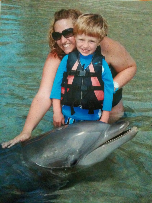 T and I pose with Hua during our Wee Tots encounter at Dolphin Quest, Big Island, Hawaii. We’ll see you next time, Hua… just not with Wee Tots!