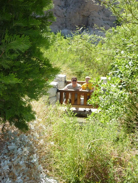 T and C checking out one of the trout ponds along the paved path at Whitewater Canyon Preserve (CA).