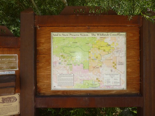 The map at the trailhead leading out from the Whitewater Canyon Preserve (CA) ranger area. Be sure to read the signs and make sure you don’t need any special use permits for your day-hikes!