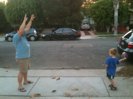 T tosses the ball over to C… did he catch it? While I didn’t get any pics of C catching the ball, he did.