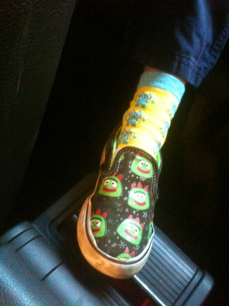 crazy sock n shoe Posted on October 23, 2012 | 1536 × 2048 | Posted in Return to If the Kids Said No a Lot This Week, That’s a Big YES, RMT’ers! ← Previous Next → It’s crazy sock – and shoe – day every day for T, but I made sure to ask which specific crazy socks he wanted to wear on Tuesday for Red Ribbon Week. Share this:Tweet Email a link to a friend (Opens in new window) Email Like Loading... Post a comment or leave a trackback: Trackback URL.