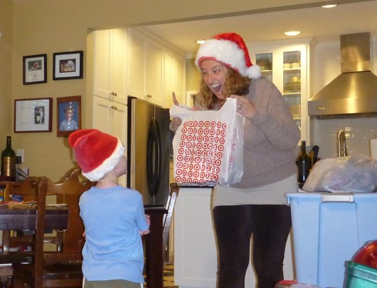 I’d also put away an extremely supersonic Star Wars Advent calendar from past-season last year. The LEGO Store had it for under $20, so I snatched that right up not even knowing for sure whether T would like Star Wars by this time in his life. Well, I don’t really know what I was so concerned about; given that T’s five, a boy, and totally into space and the good-guy versus bad-guy thing, it’s pretty much the perfect choice. In the end, I kind-of felt like one of those moms from the Famous Footwear TV commercials (victory!).