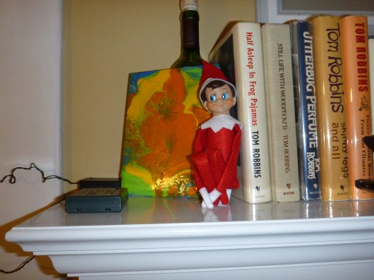 Buddy’s back in town! Notice how our Elf on the Shelf actually is on a shelf?! We are very glad to have an Elf who keeps true to his name. Nothing fancy needed here to keep T entertained; he’s perfectly content simply looking for his new shelf spot each morning. I had posted a pretty funny musing about Elf on the Shelf on my Facebook page last weekend, which I link to again below.
