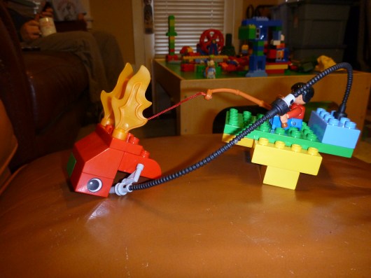 While not a bauble from the LEGO Advent Calendar, T did build this Santa sled complete with reindeer from his many LEGO-Duplos. I love his creativity with all my heart!