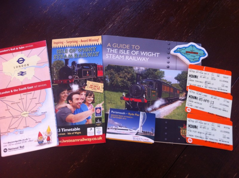 Our trinket take-away from our day-trip down to the Isle of Wight and Portsmouth. This is about a two-hour, one-way train and ferry trip south of London. The tickets on the righthand side of this photo represent T’s ticket package that we purchased at Waterloo Station in London for the entire trip and steam train excursions for the day.
