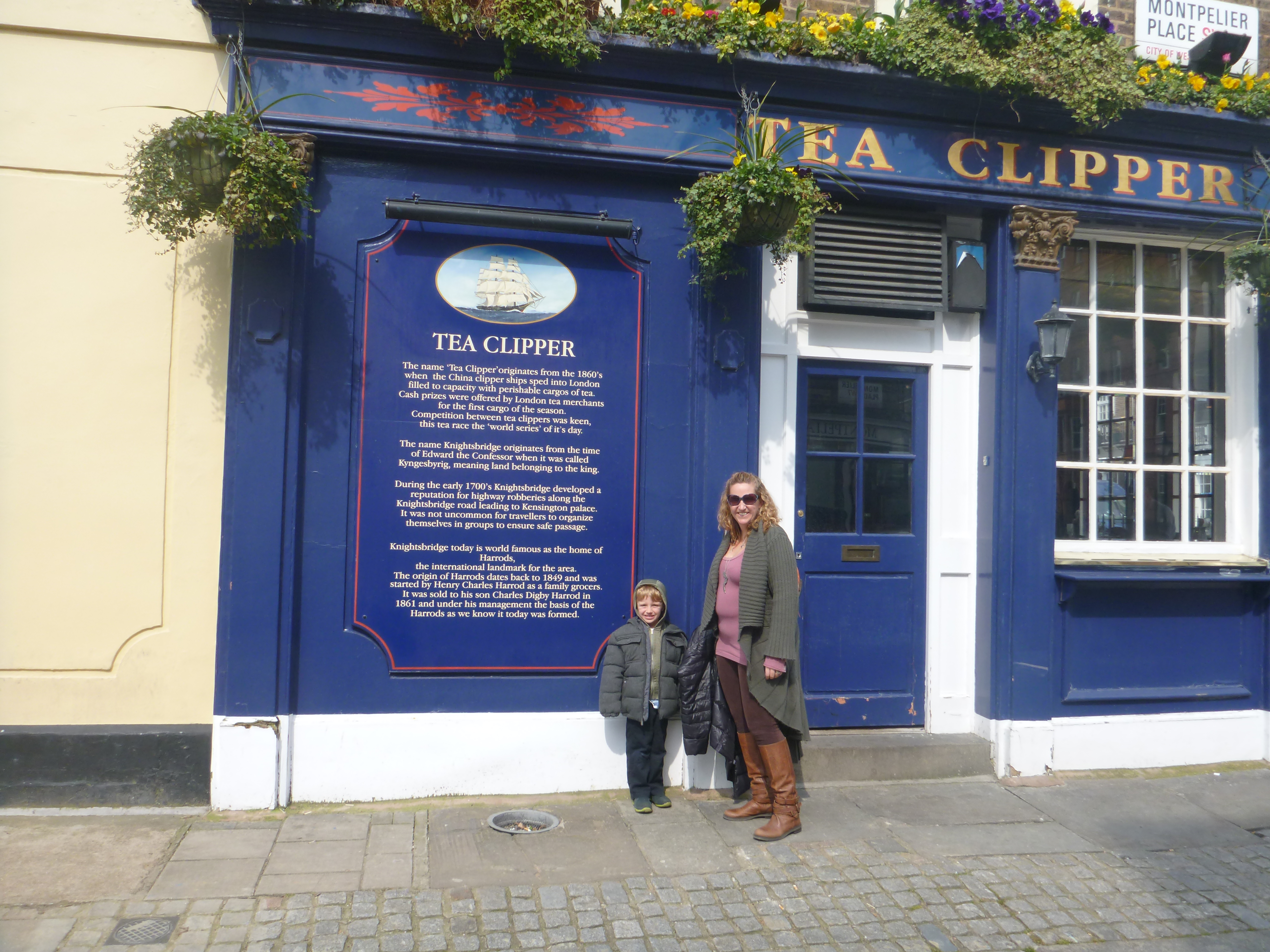 09 tea clipper me t Posted on May 22, 2013 | 4000 × 3000 | Posted in Return to London’s Shopping Shrines: Hamleys and Harrods ← Previous Next → T and I in front of The Tea Clipper pub. Share this:Tweet Email a link to a friend (Opens in new window) Email Like Loading... Post a comment or leave a trackback: Trackback URL.