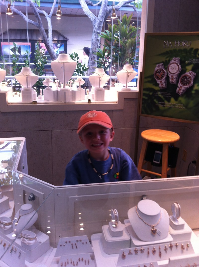 In other news, T got a job at Na Hoku in King’s Shops in Waikoloa during one of our mall outings. No, really though, we stopped in here as the mall ran a special from July 1-8, 2013, that for each dollar spent you received 2 Hawaiian Airlines miles with receipts turned in at Na Hoku! Of course, C was all over this, so we swung by and redeemed a nice little haul from our various happy hours and purchases. PS – those miles can transfer into American Airlines miles, just one tip for anyone looking to enter the OCD world of extreme miles and points.
