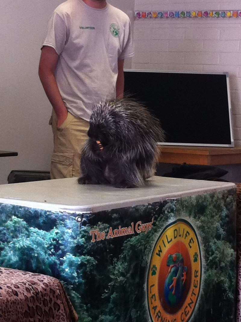 Fun porcupine fact: Though many cartoons would have you believe differently, “Gus Gus” here cannot shoot his quills. The white quills also act much like the whiskers on a cat would in that they are considered guard hairs that help measure if he can move through certain spaces or if a predator is nearby.