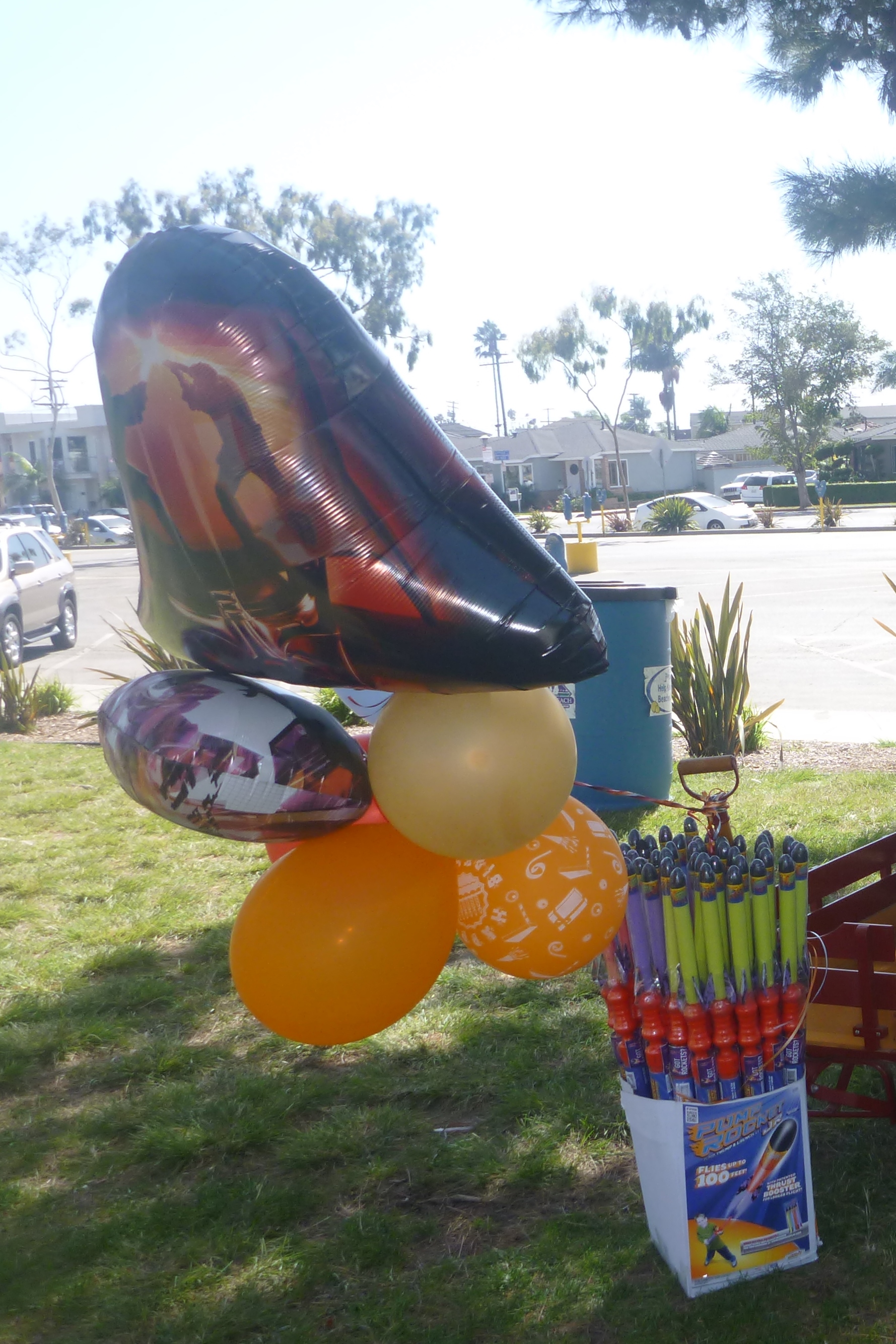 That big box is the box of party favors, which were manual air rocket launchers. I found them at a few different Ralph’s grocery stores all over Long Beach (CA) on summer clearance for as little as $1.50 each. Some stores still have them, and it is cheaper to go get a whole new launcher and rocket than order replacement rockets online. In fact, buying four launchers with their rockets would be cheaper!
