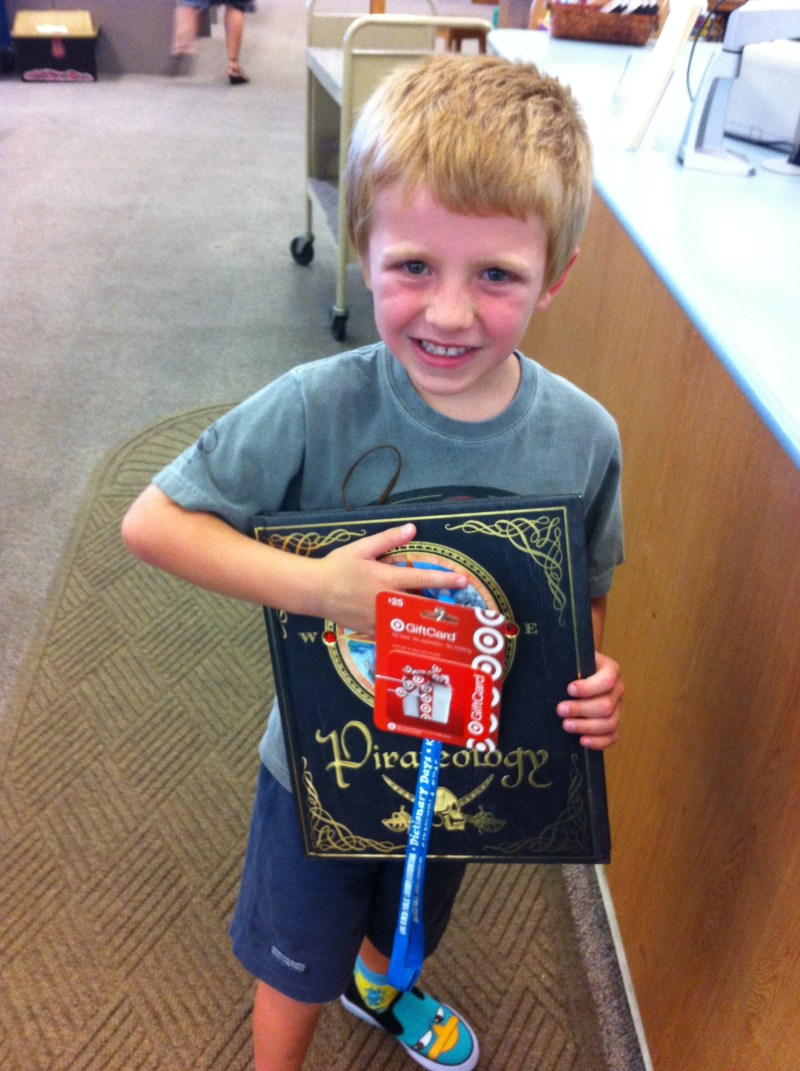 T won the summer reading grand prize for 2013! But that’s not why we visit our local library (but it sure doesn’t hurt our efforts in raising a reader). Thanks to our friends at the Bayshore branch of the Long Beach Public Library!