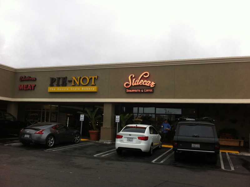 Located on 17th Street in Costa Mesa, Sidecar Doughnuts is tucked away in a mini-mall next to another pie bakery. The “anchor”is Starbucks, and across the street is Bruxie, the waffle-themed restaurant for breakfast, lunch, and dinner. Basically, Sidecar is perfectly placed along a corridor of cool, cutting-edge culinary delights.