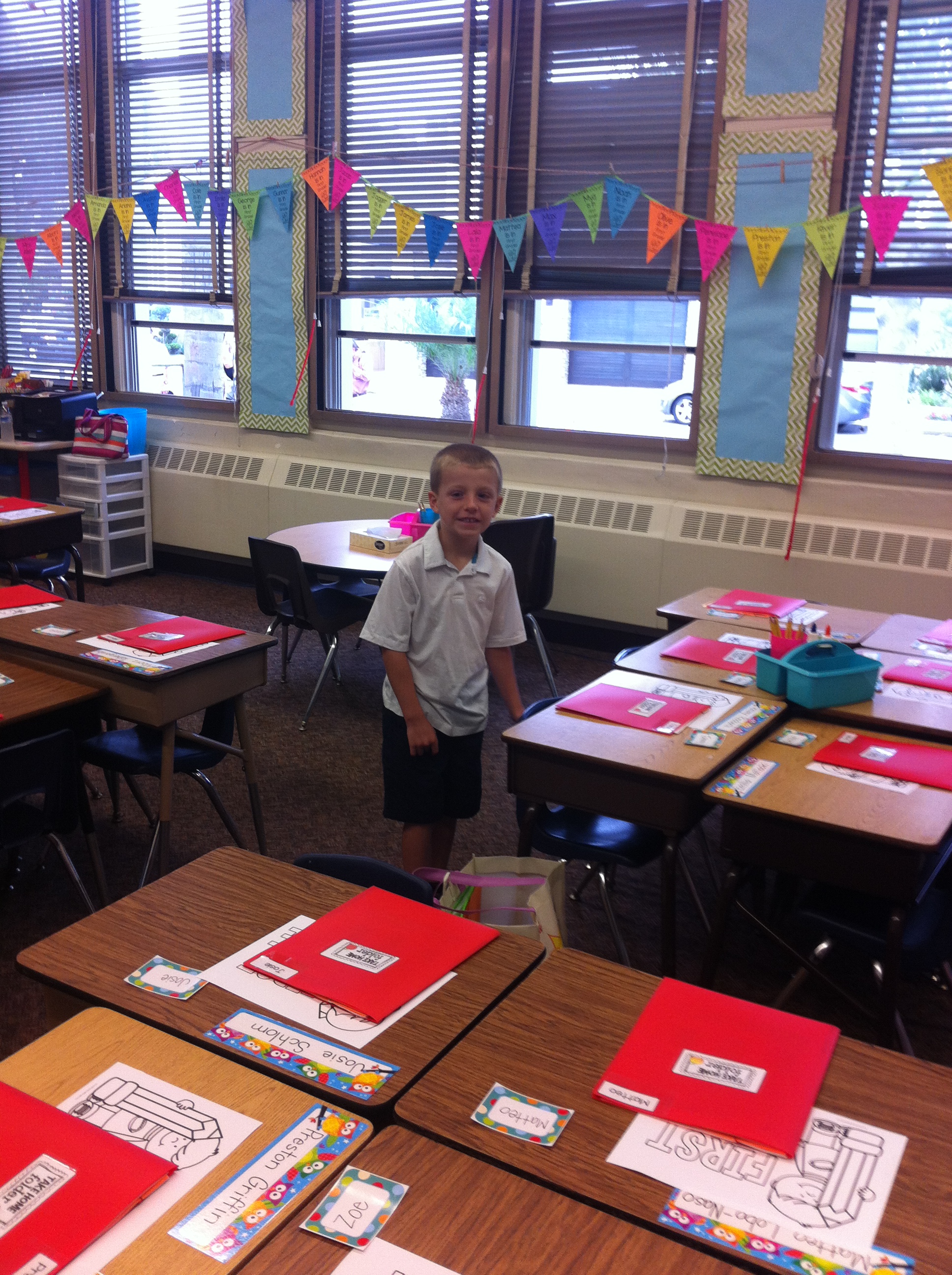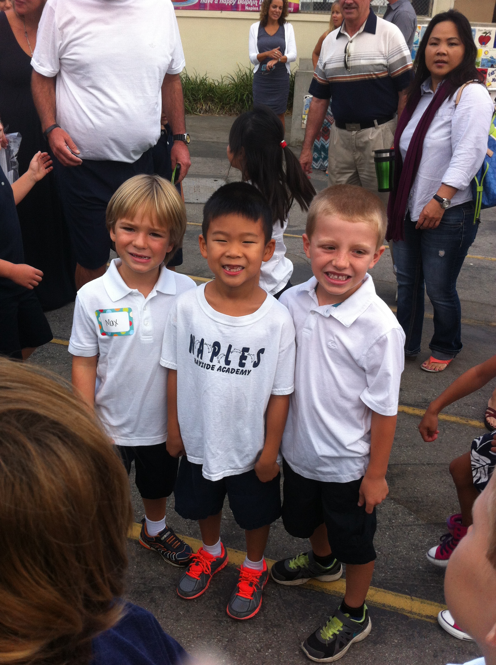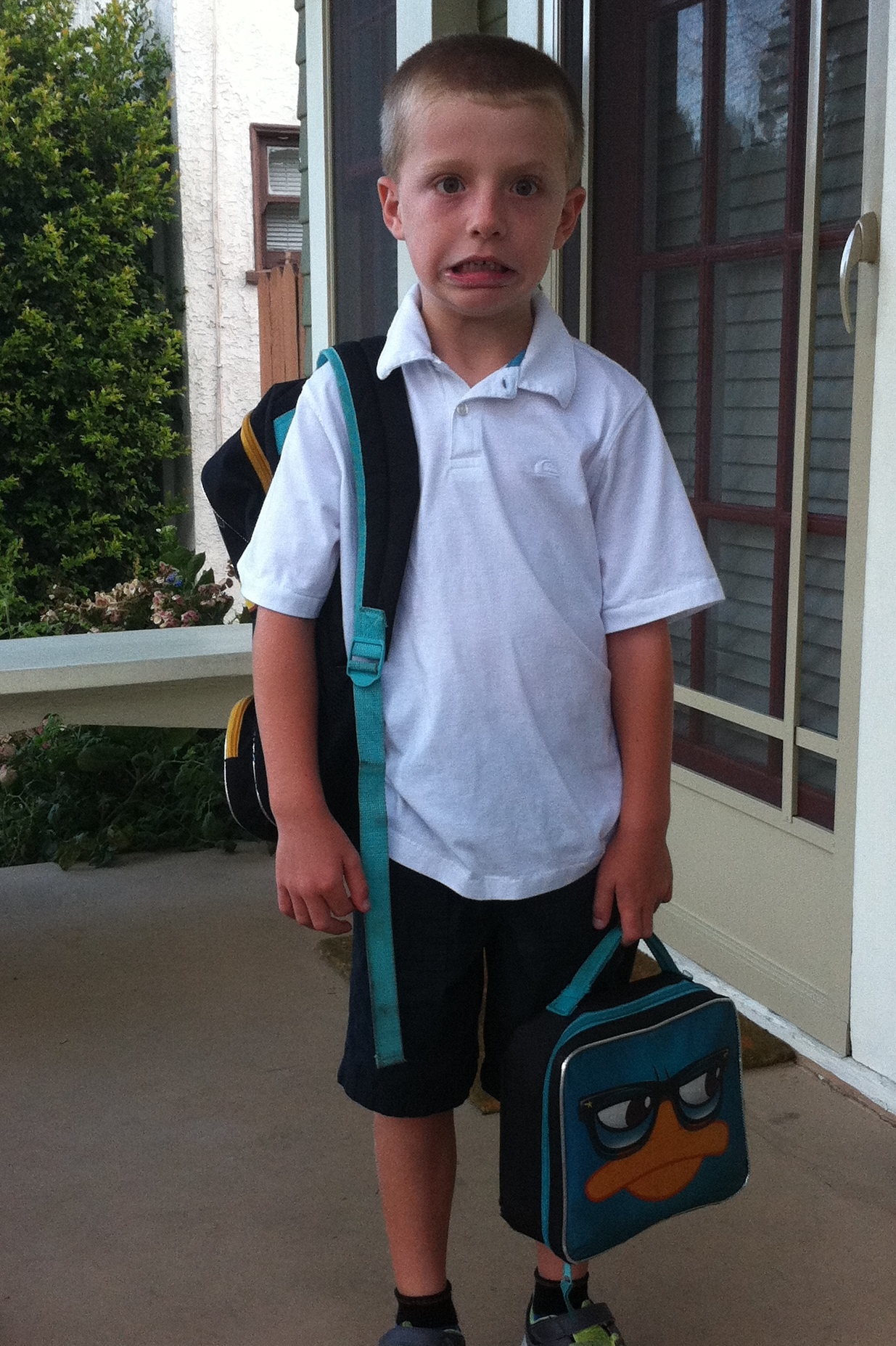 We’ve been through this before. Many times. There were no tears. In fact, there was hardly a feeling of it being a first since this is our second year at our awesome school. There were many familiar faces, including T’s teacher, who taught the other Kinder class last year. We knew where to park, where to go, and what to do (for the most part). As T would say, it was “easy peasy.”