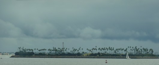 A view of one of the four local oil islands behind the breakwater in Long Beach (CA). While the weather was a little wonky that Sunday morning, the views were still as spectacular as ever from our free train tour sponsored by the Port of Long Beach.