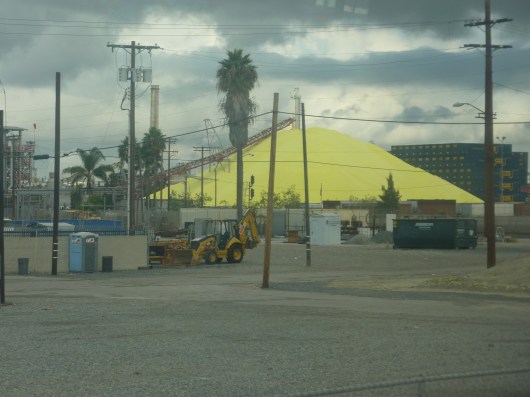 This bright yellow pile is sulfur. No, it didn’t stink, or we didn’t smell it anyway while riding the rails down at the Port of Long Beach.