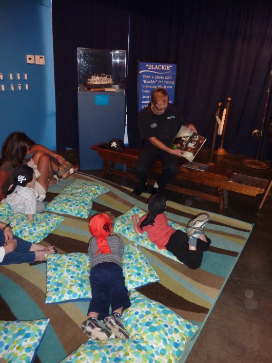 Joel read the kids a great pirate story during the "Ahoy! I See Pirates!" Sea Tales class at the Newport Harbor Nautical Museum.