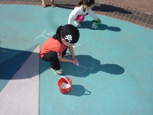 Next, Joel led the kids outside for a sidewalk chalk and bubble time, which was a welcome break from all the sitting still. The kids loved using the chalk to write their names or just to doodle whatever came to mind. The bubbles were a huge hit on this lovely day, too.
