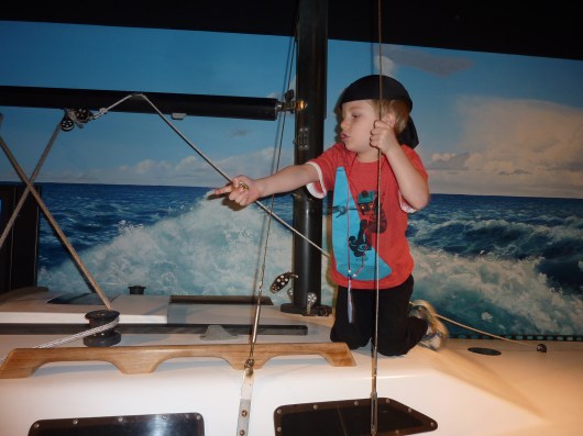 To end the class, Joel led a small group at the touch tanks. T wasn’t interested much in that today since he’d just become a pirate, so for him the rest of the time was about playing on the museum’s play boat. Of course it was… T loves that boat!