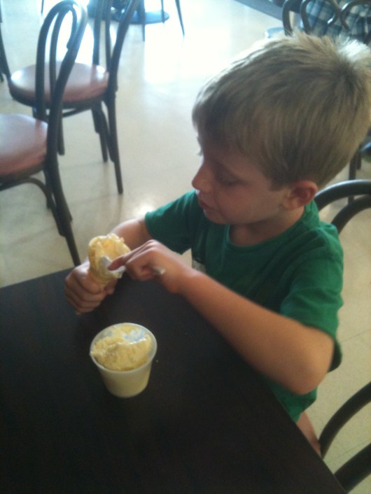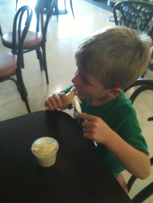 Yum! T dug his vanilla ice cream at Fosselman’s!